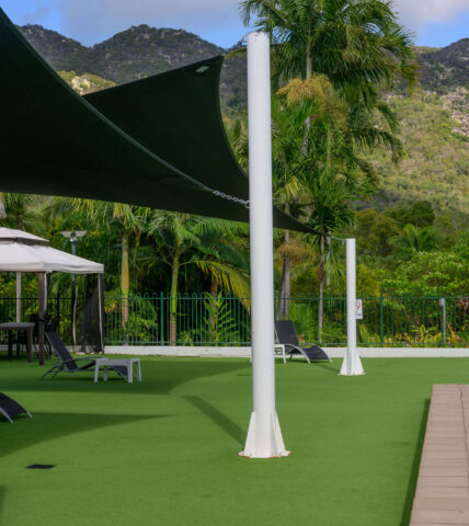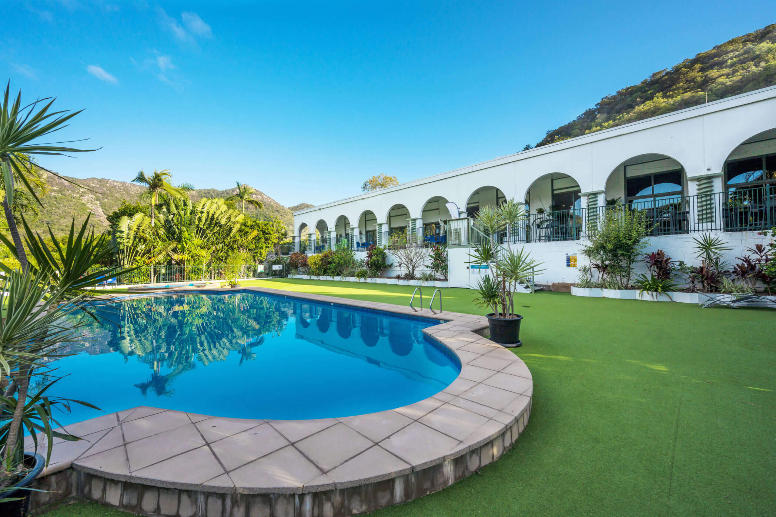 Guests can enjoy a large magnesium saltwater pool, expansive open grounds, tennis courts, a barbecue area and a children’s playground. Free private parking is available on site, and the Picnic Bay Bus stops directly at the front of the resort. The shuttle service to and from the ferry terminal is available subject to availability.