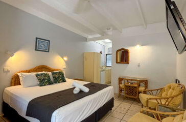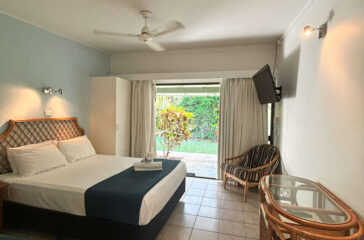 Every room opens onto an outdoor patio, providing the perfect spot to relax and take in the surrounding greenery. Guests may even be visited by some of Magnetic Island’s friendly local wildlife, including wallabies and native birdlife, which often wander through the spacious grounds.